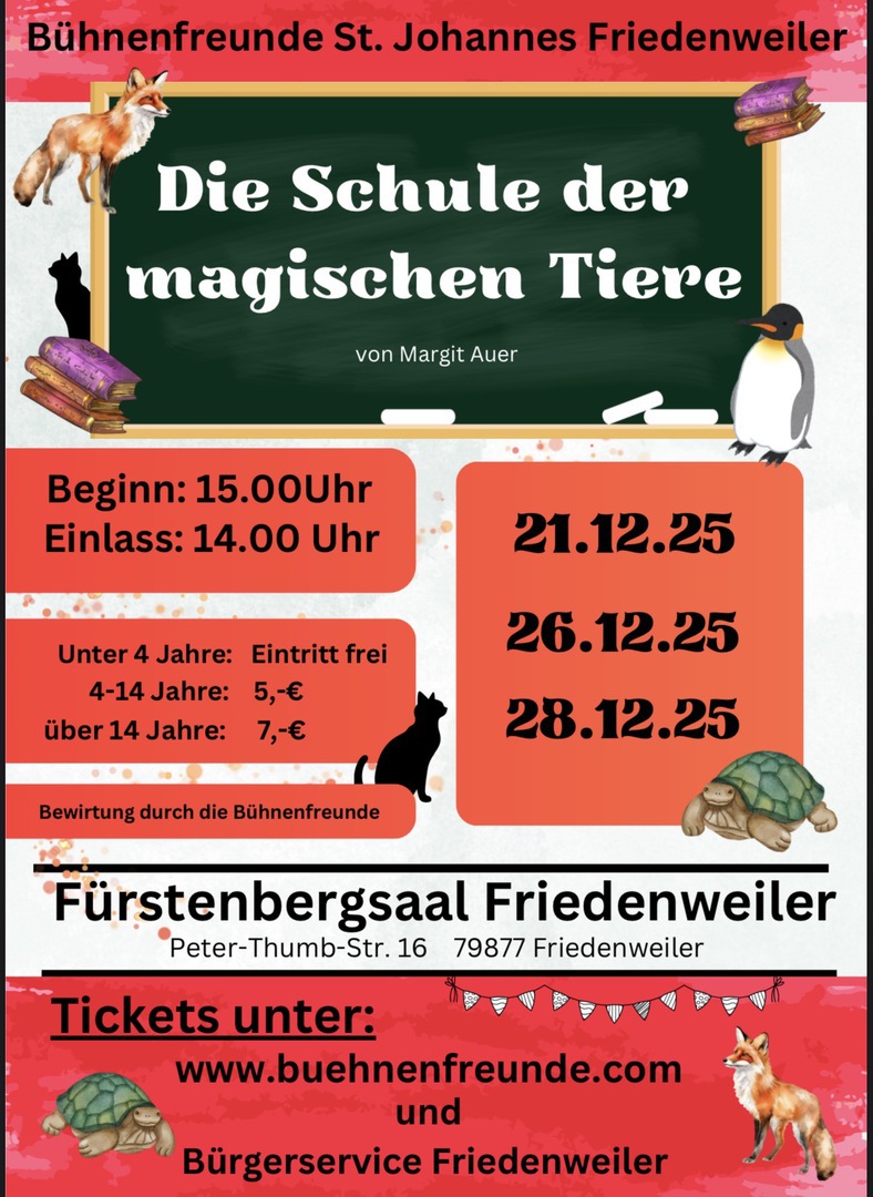 Kindertheater - "Die Schule der magischen Tiere" Start Vorverkauf am 24.11. 09:00 Uhr